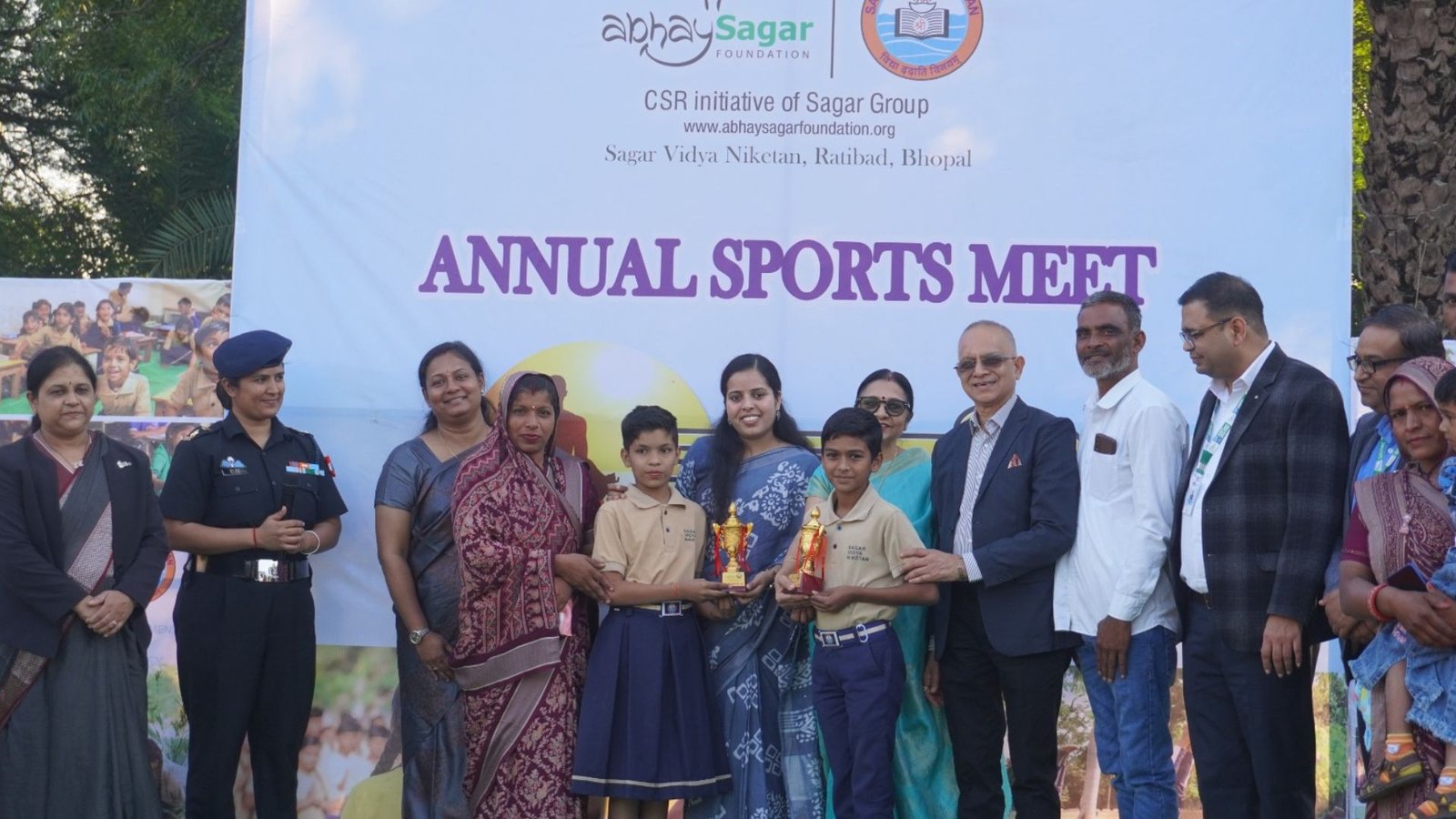 Sagar Vidya Niketan celebrated its Annual Day 2025–26 with grandeur, cultural charm, and patriotic spirit. The theme “Tatvamasi – Nirbhik Bharat” emphasised self-realisation, inner strength, and nurturing fearless, value-driven future citizens. The occasion was graced by Chief Guest – Lt. Col. Ela Vohra and Guest of Honour – Ms. Sheelu Sharma, Assistant Director, DPI, whose presence added inspiration and grace to the event. Dignitaries from sister institutions & parents also blessed the students with their presence. The celebration began with invocation of blessings of Maa Saraswati. The programme featured a disciplined March Past by the 4 houses, enriching Anmol Vachan- Doha presentation, a delightful “Chhoti Si Asha” by KG students, the soulful “Yogam – Journey of the Soul”, a vibrant Skipping Act – “Witness the Magic”, and the powerful “Shaktirupa” inspiring the audience about gender equality. . Kalaripayattu by Class II & IV and “Vasudhaiva Kutumbakam" - mass demonstration by classes I & II captivated the gathering. The meritorious students of Class X Board Examination (2024-25) were also felicitated and the Best Student for the session 2025-26 (Senior & Junior) were also applauded, bringing gratitude and pride in the happy tears of the parents. The Students’ Council presented the Annual Report with Madam Principal, followed by motivating addresses from the esteemed guests. The Vote of thanks was proposed by the Headmistresses. The program culminated with the echo of the national anthem, filling each heart with pride, love and sense of responsibility towards our motherland.